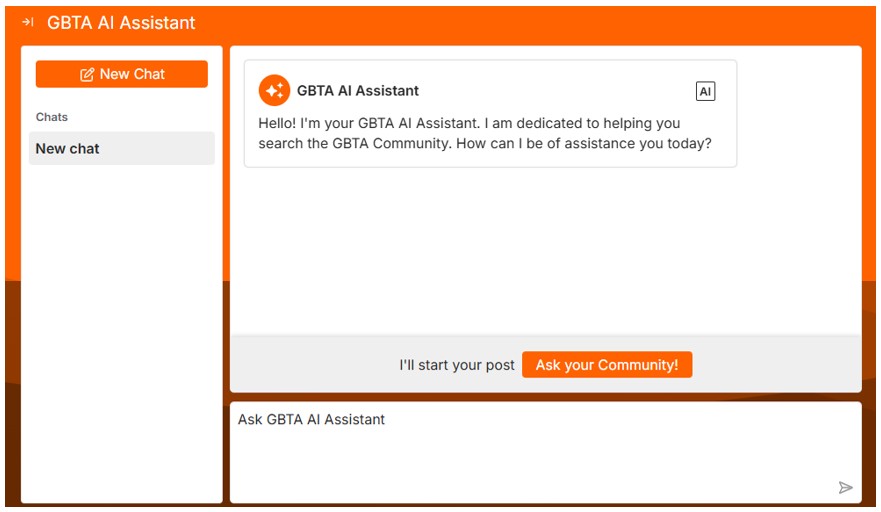 Finding resources is now simple. Use our GBTA Community+ AI Assistant. It will scan through documents and transcripts of videos to help you find what you need! To get started look for the icon below or simply use the search bar:
