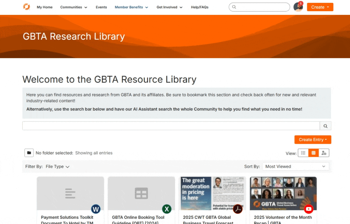 To search for your member-exclusive resources and research, visit community.gbta.org. You will find over hundreds of published documents relevant to different areas of the business travel industry.